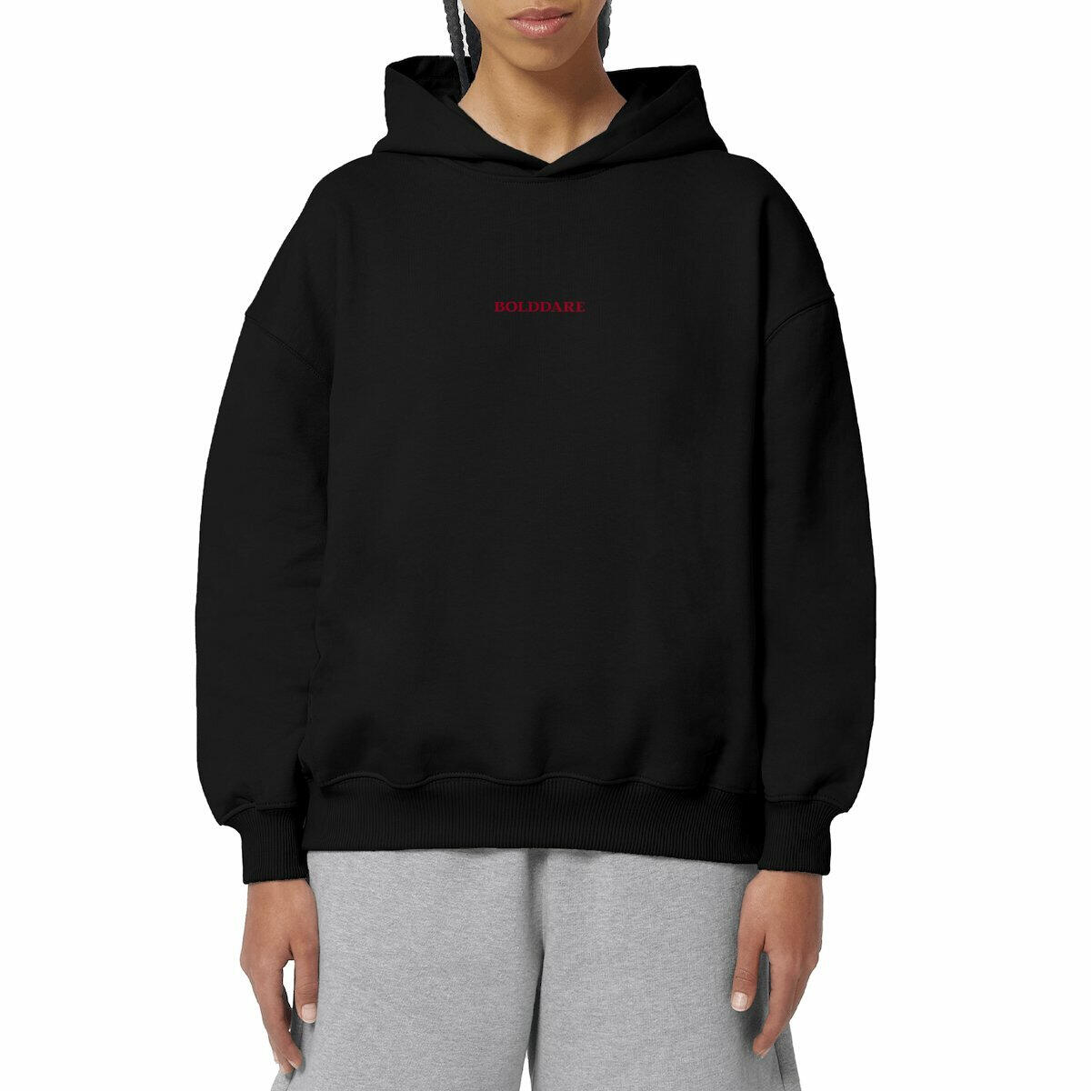 A powerful presence doesn’t need to shout. This oversized hoodie features the Bolddare logo front and back — a bold emblem worn in quiet confidence.Made from 85% organic cotton and 15% recycled polyester, with a heavyweight 300 g/m² fabric and dropped shoulders, it delivers comfort, strength and structure in every stitch.Available in sizes XS to 2XL.